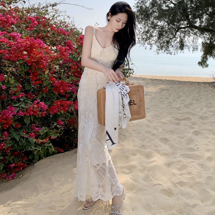 Low-cut deep V lace suspender dress 73