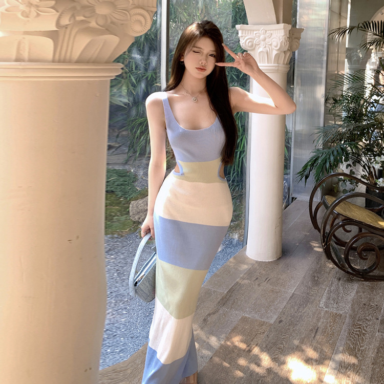 Ties Contrast Color Suspender Dress 51
